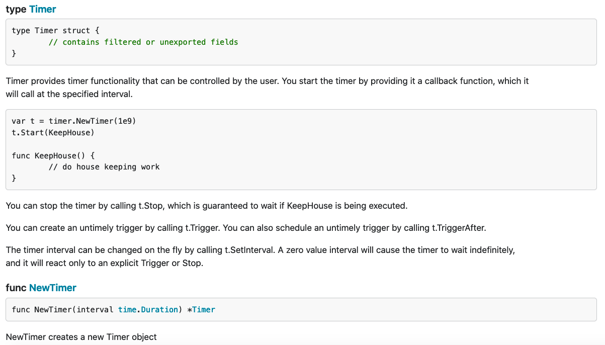 고랭의 Timer 함수는 자바스크립의 setTimeout과 같은 효과를 볼 수 함수입니다.