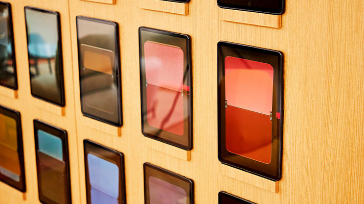 미디어 월 좌측에는 태블릿 PC 40개로 완성한 디지털 컬러 컬렉션(Digital Color Collection)이 있다.