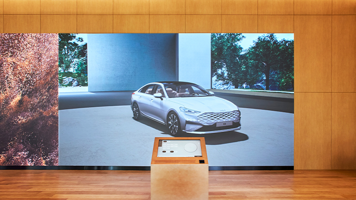 기아의 모든 외장 컬러를 감각적으로 표현한 디지털 컬러 컬렉션은 40개의 디스플레이가 카드 플립 컬러 쇼를 연출하며, 컬러 하나를 선택하면 해당 컬러를 구비한 차량 리스트와 360VR 이미지 및 차량 제원 등의 정보를 제공한다.