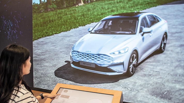 고객들은 담당 직원의 별도 안내가 없어도 3D 컨피규레이터의 다양한 기능을 통해 기아 전 차종을 자유롭게 둘러볼 수 있다.