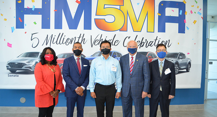 현대자동차는 12일(현지시간) 미국 앨라배마주 몽고메리에 위치한 미국 공장(HMMA, Hyundai Motor Manufacturing Alabama)에서 조 보너(Jo Bonner) 앨라배마 주지사 수석보좌관, 테리 스웰(Terri Sewell) 앨라배마주 하원의원, 스티븐 리드(Steven Reed) 몽고메리 시장 등 정부 관계자와 김의성 법인장 등 임직원이 참석한 가운데 500만 대 생산 달성 기념식을 가졌다.