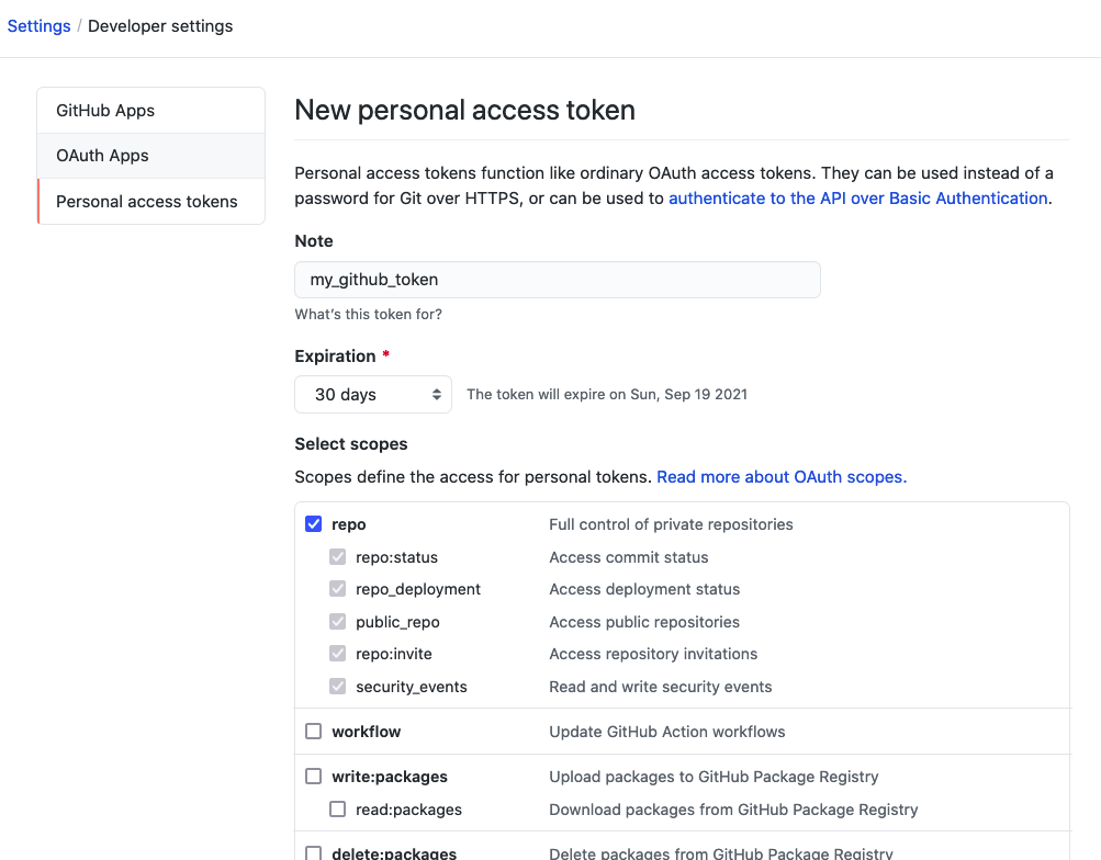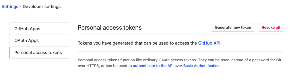 바로 본인의 github token 을 만들어야 합니다.