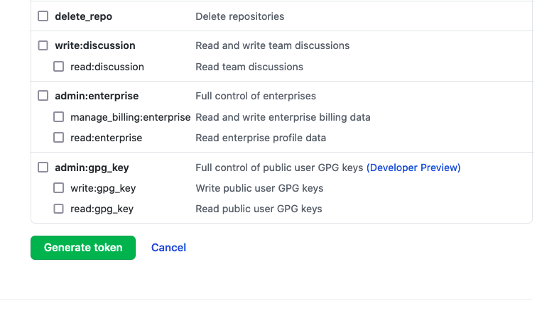 그리고 아래 그림처럼 맨 밑에 있는 Generate token을 눌러서 토큰을 만들면 됩니다.