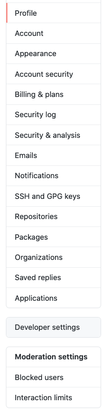 그러면 본인 계정의 Profile이 나오는데 이제 왼쪽 아래쪽에 Developer Settings를 클릭합니다.