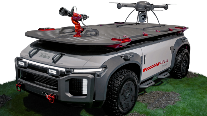 이밖에 재난구호차량은 연료전지와 전기 충전기가 사륜구동이 가능한 험로 주행용 차량에 결합한 모빌리티로, 수소로 발전을 한 뒤 재난지역 및 험지 등에 전력을 지원합니다.