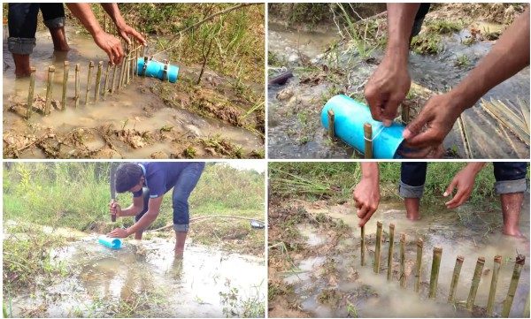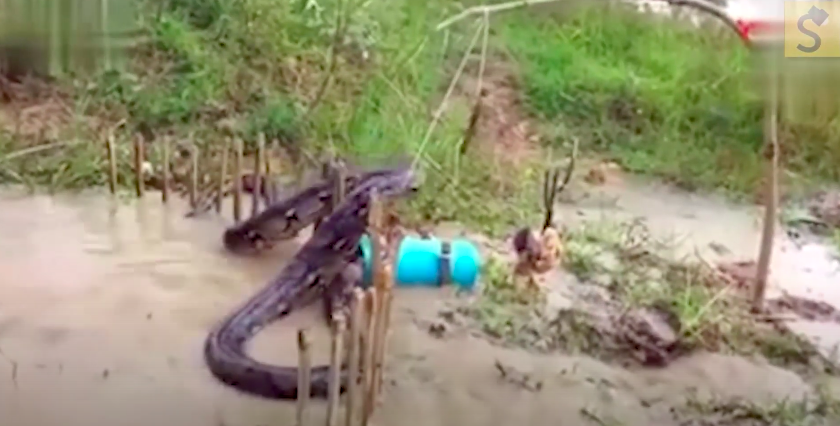 문제의 자이언트 아나콘다가 파이프 같은 관을 통과해서 덫에 걸렸습니다.