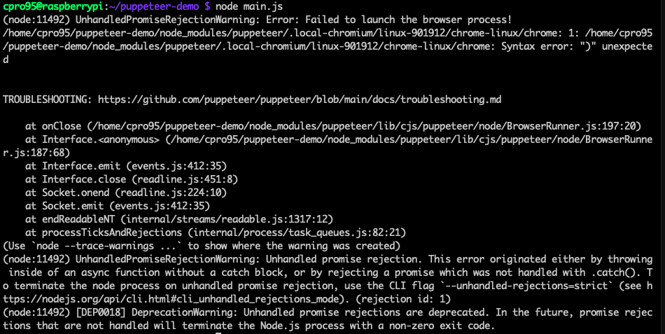 그럼 정녕 라즈베리파이 터미널에서는 puppeteer를 실행할 수 없을까요?