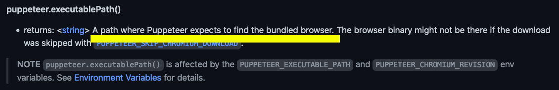 A path where Puppeteer expects to find the bundled browser.이라고 되어 있습니다.