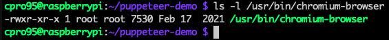 그래서 puppeteer-core 패키지를 실행할 때 chromium-browser를 지정해서 실행해야 합니다.