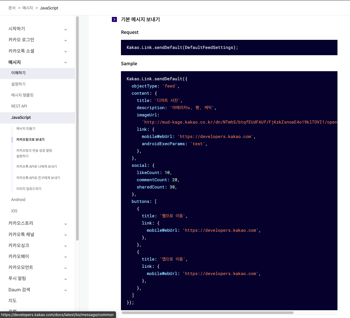 // Kakao.Link.sendDefault 의 text 보내기가 버그 픽스가 되었다.