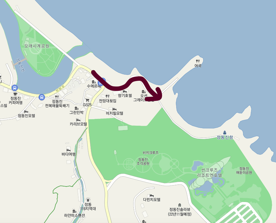 썬크루즈 리조트앤 호텔로 가지 마시고 위 그림처럼 정동진항쪽으로 빠집니다.