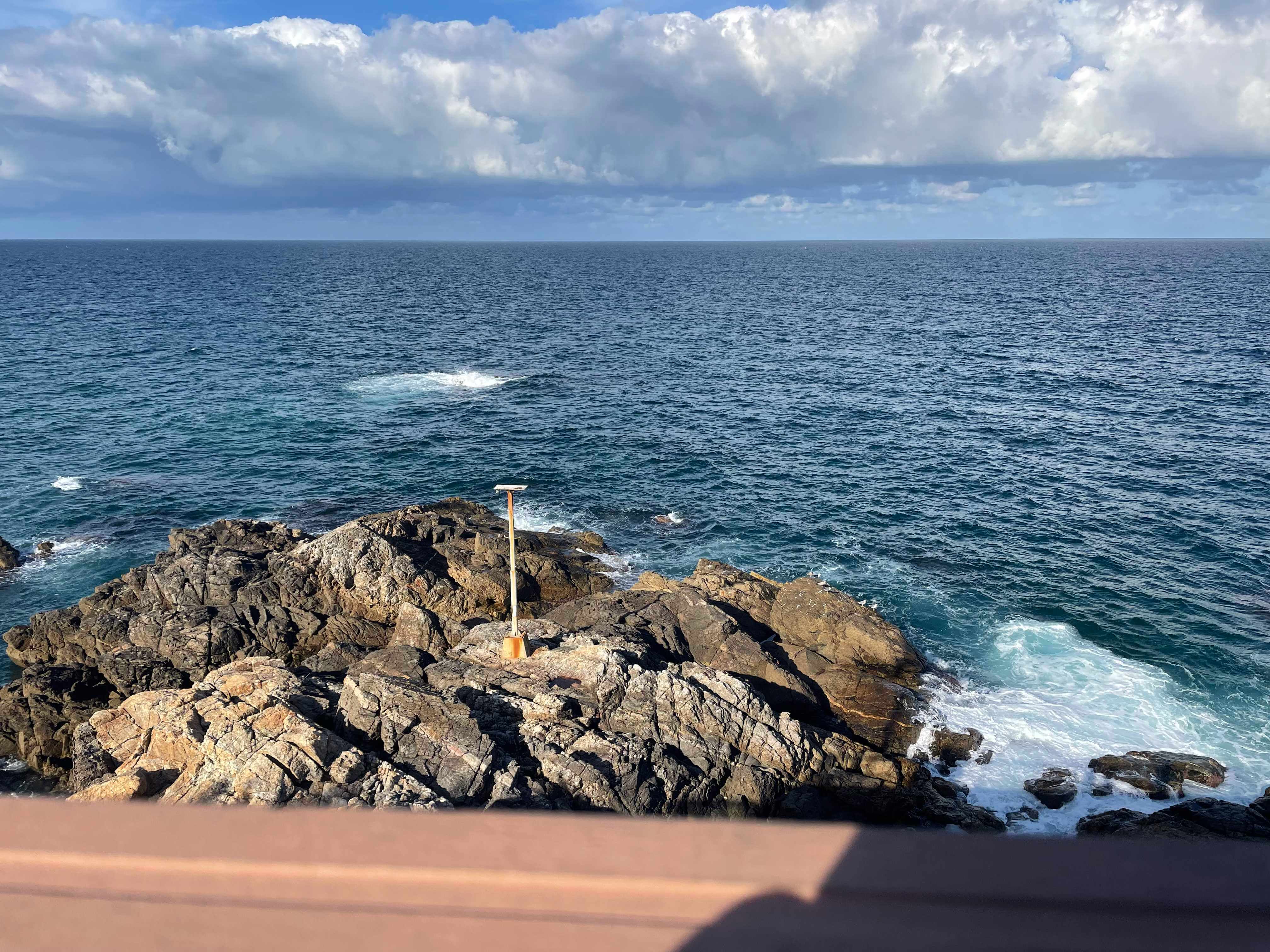 해변 앞에 있는 암벽 위에서 찍은 동영상입니다.