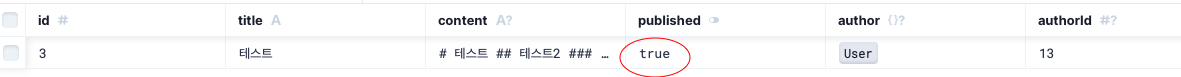 그럼, 발행하기 기능은 바로 Post DB 테이블에서 published 항목을 true로 바꾸는 기능입니다.