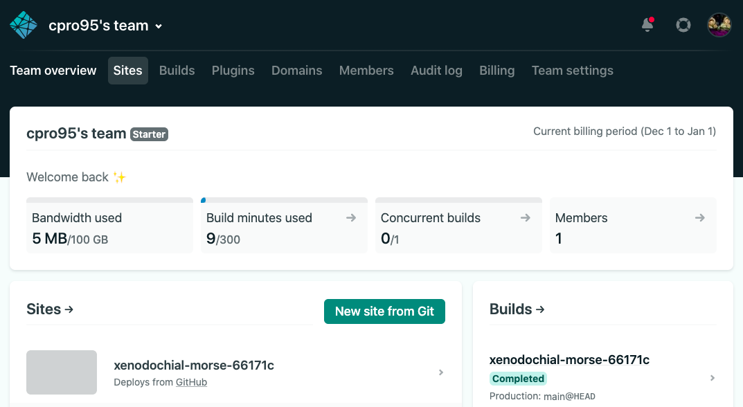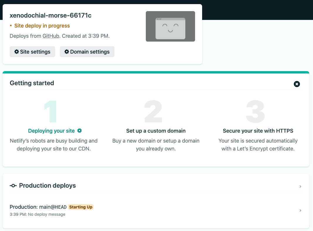 이제 "Deploy site" 버튼을 눌러 봅시다.