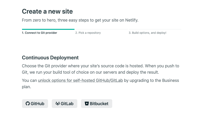 우리는 "New site from Git"으로 github 사이트를 연동할 겁니다. 클릭하십시요.