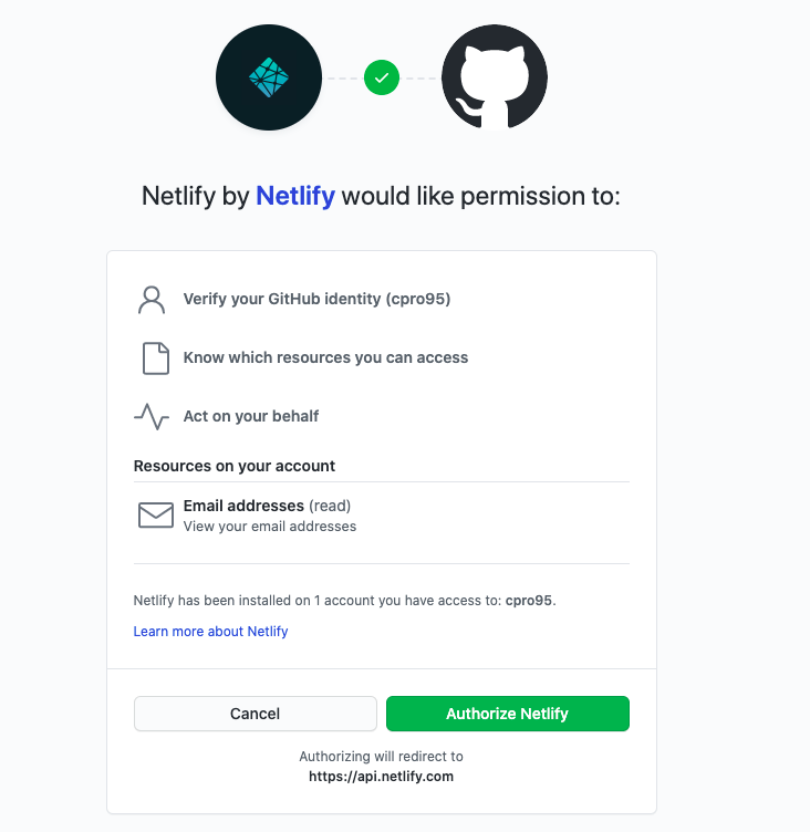 일단 netlify와 github 연동 수락 해주시고 (Authorize Netlify) 기다리시면 아래와 같은 화면이 나옵니다.