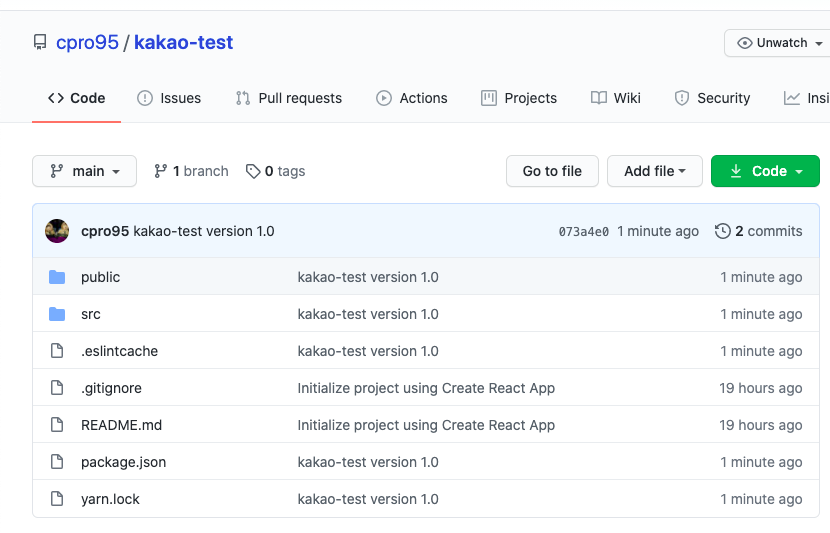 우리가 아까 github에 올렸던 kakao-test가 보이네요.