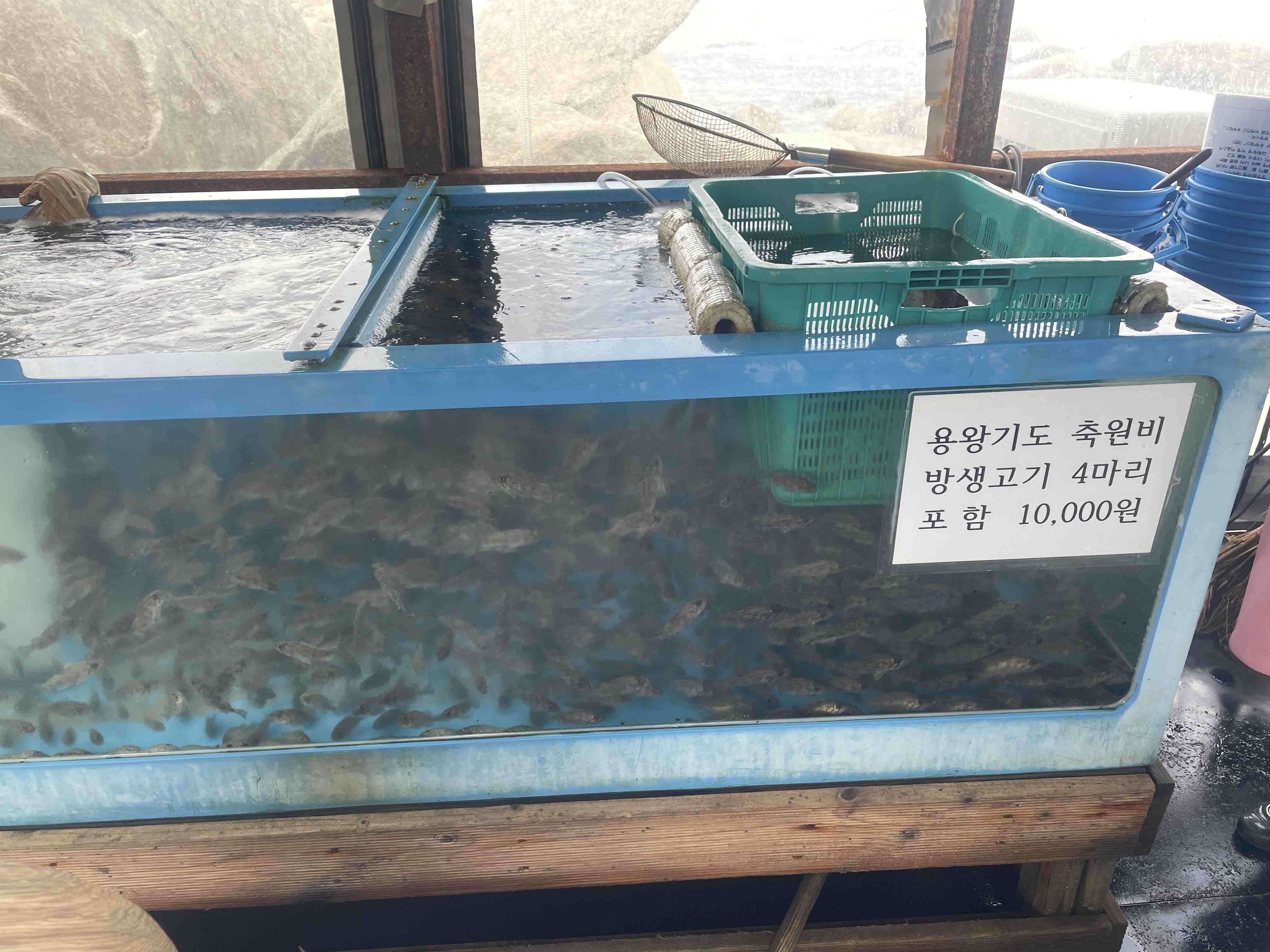 여기서 뭘 파냐면 바로 아래 사진처럼 방생 물고기를 팝니다.