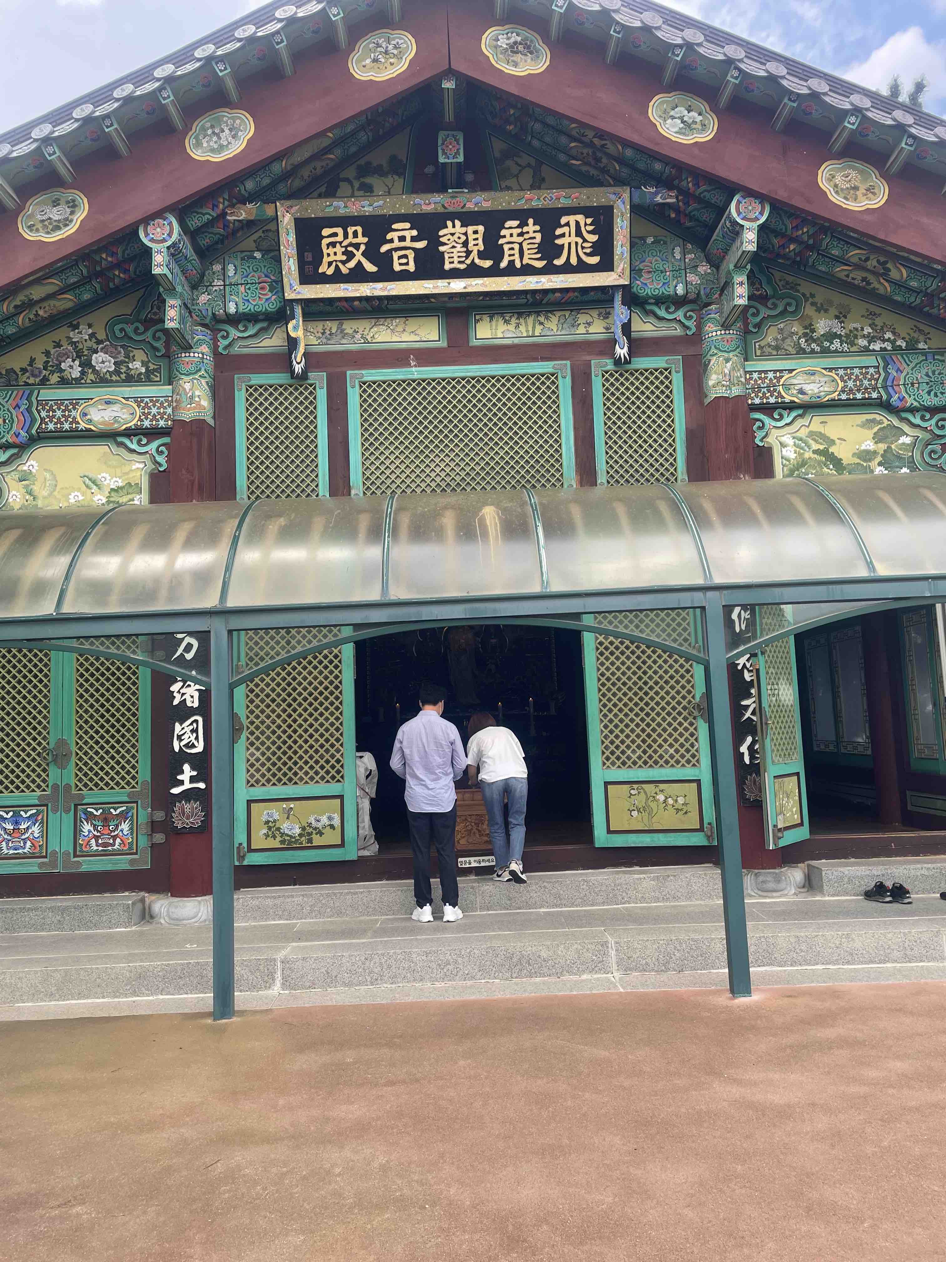 이제 바다 쪽을 향해 밑으로 내려가면 중간에 보이는 게 바로 비룡 관음전입니다.