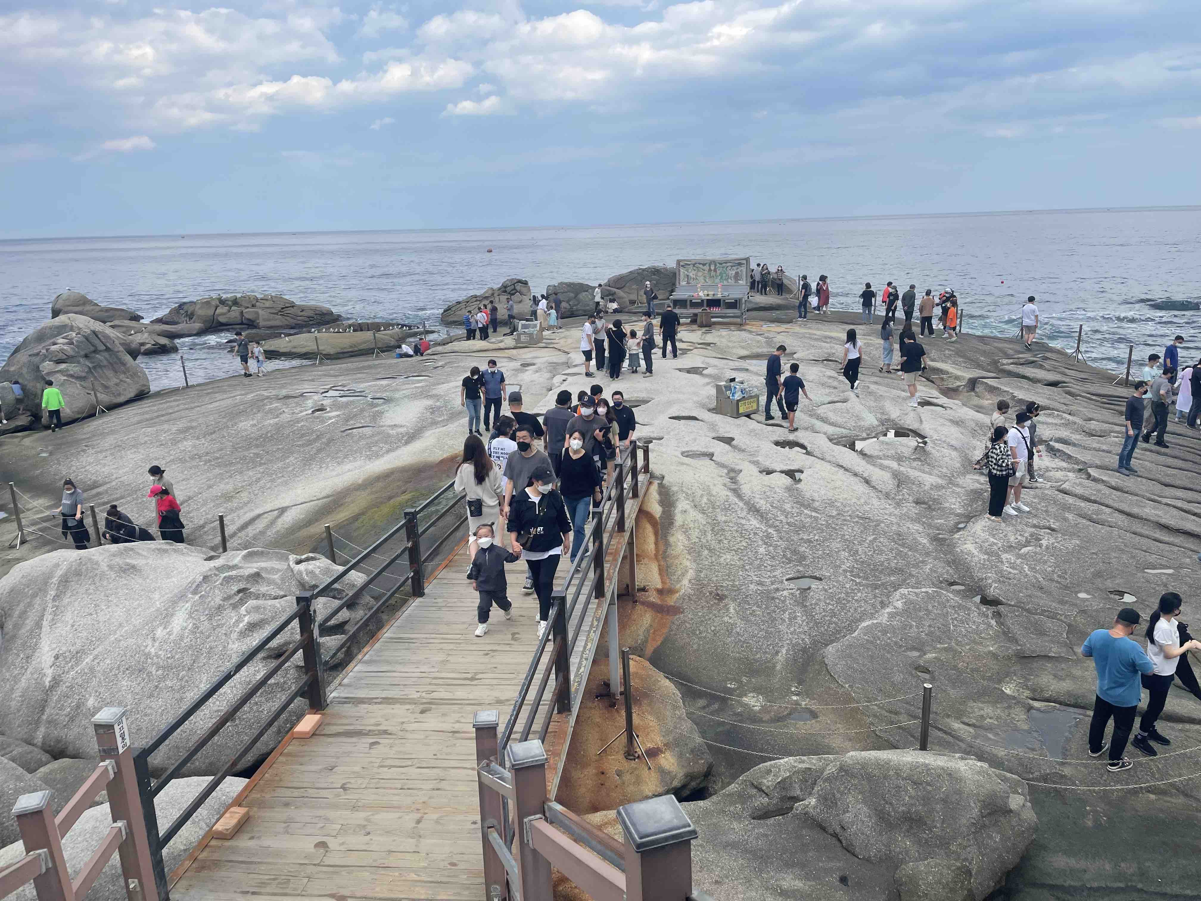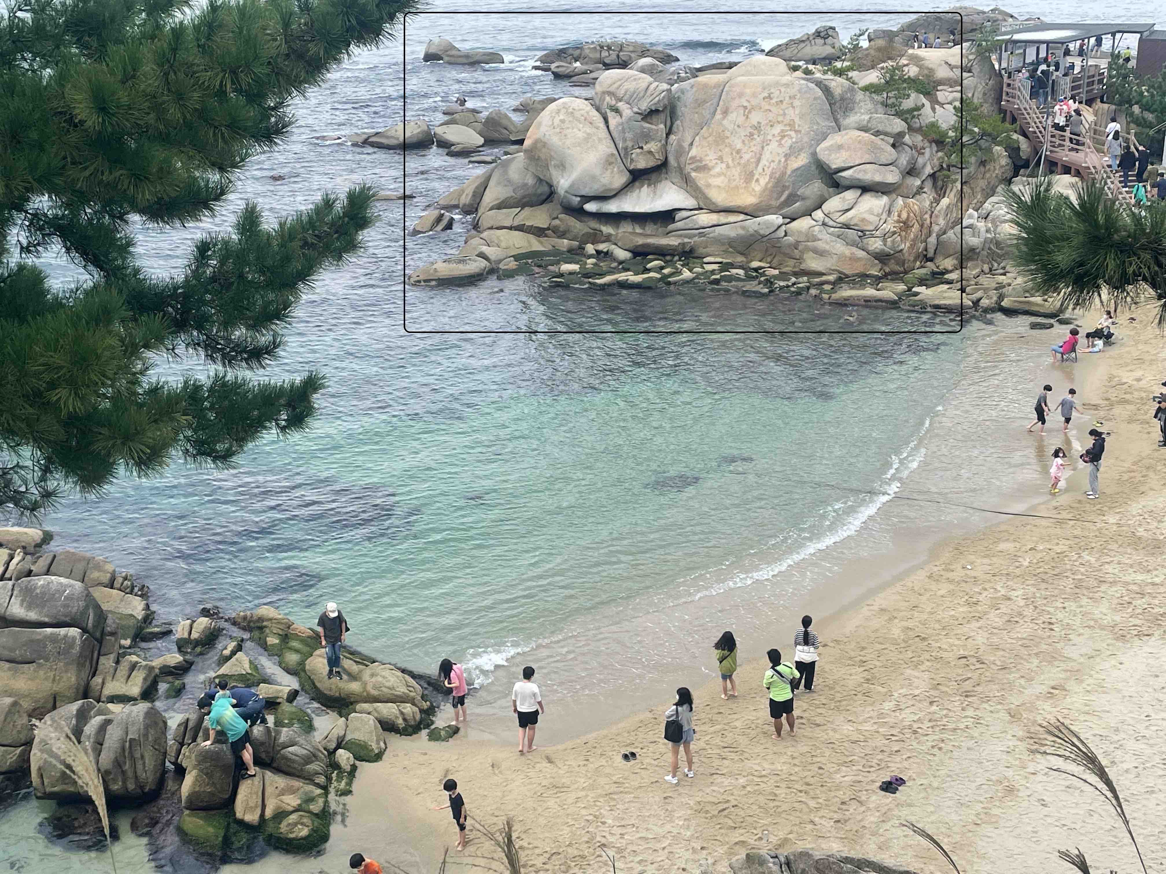거북이 바위 뒤로 또 사람들이 많이 몰려 있습니다.