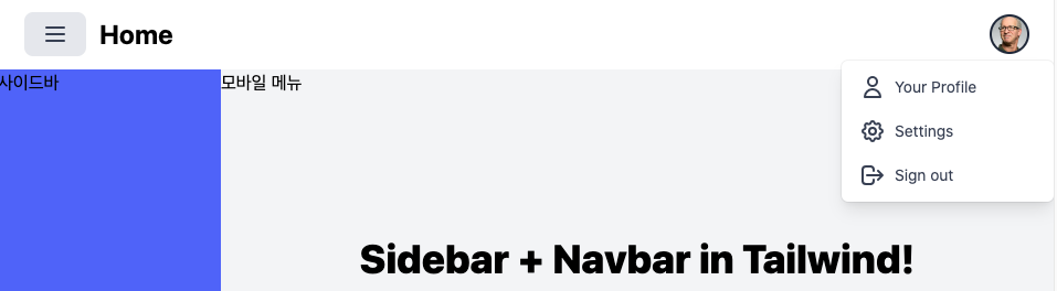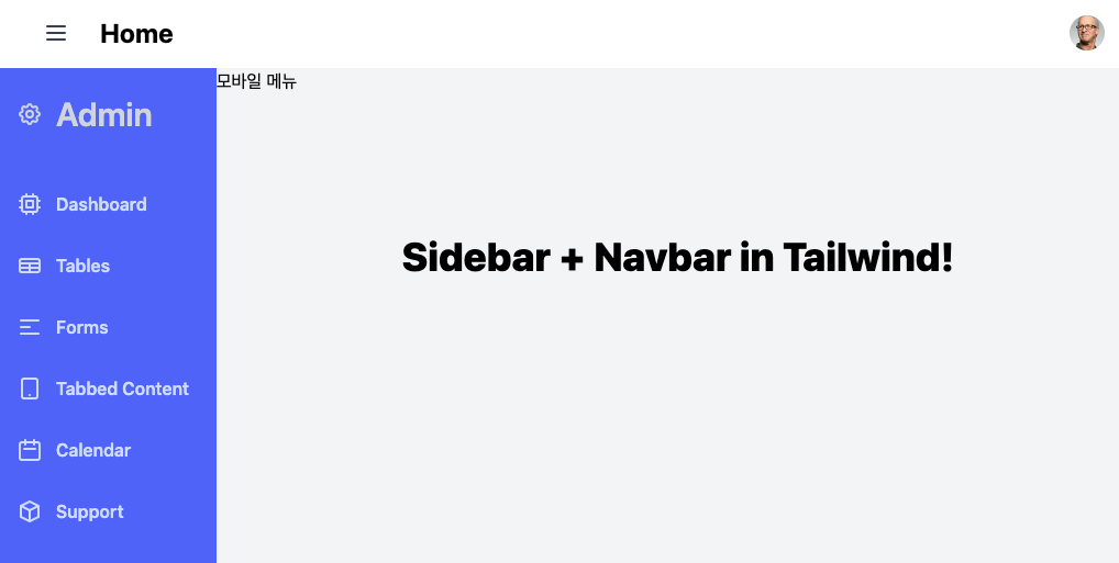 지금까지 Tailwind CSS로 사이드바 Navbar 만들기였습니다.