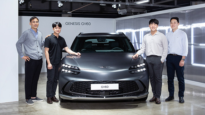 GV60의 얼굴 인식과 지문 인증 시스템을 완성한 연구원들과 함께 GV60를 살펴봤다.