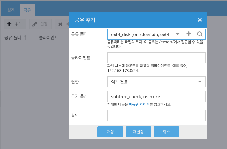 그래서 윈도용인 SAMBA와 Mac용인 NFS를 설정하도록 하겠습니다.