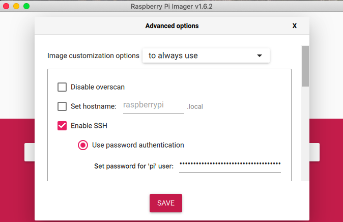 그리고 기본 사용자 명인 "pi"에 대한 패스워드도 설정할 수 있습니다.