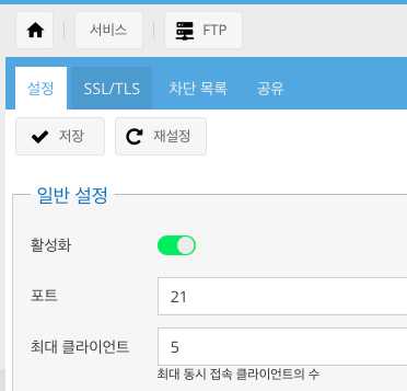 왼쪽 서비스에서 FTP를 눌러보면 다음과 같이 뜹니다.