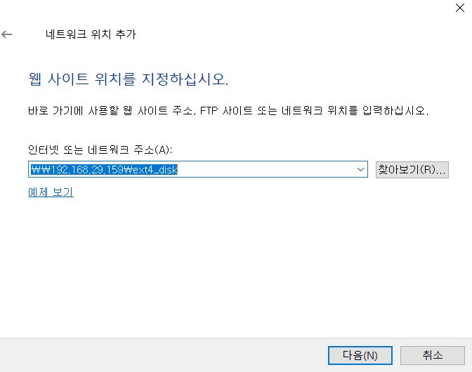 우리의 라즈베리파이 NAS 네트워크 위치를 추가하는 겁니다.
