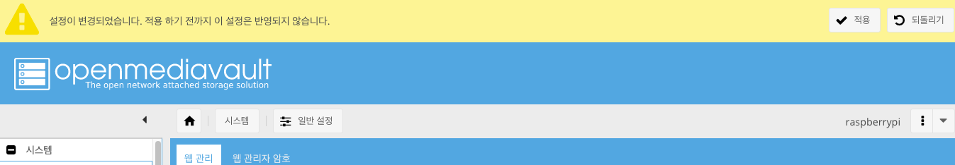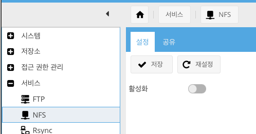 상단 시스템 적용 버튼을 누르기 전에 SMB와 NFS로 들어가서 다시 체크하시는 게 좋을 듯합니다.