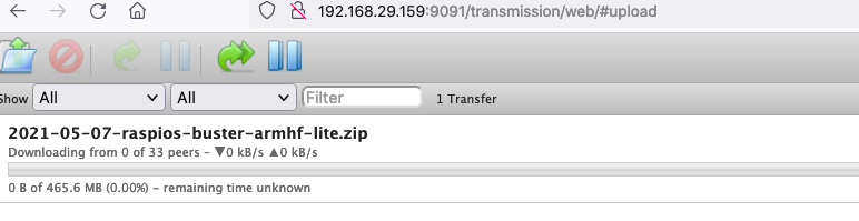 이제 다시 transmission을 restart 버튼을 눌러서 실행해 볼까요?