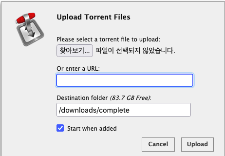 그래서 사실 웹상에서 토렌트서버에 접근하는 거 보다 이 transmission remote gui를 사용하는게 훨씬 편합니다.