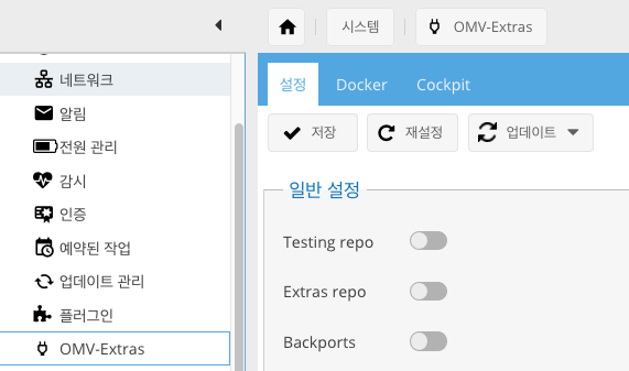 이제 OMV 웹 대시보드로 이동해 보시면 아래와 같이 OMV-Extras가 나옵니다.