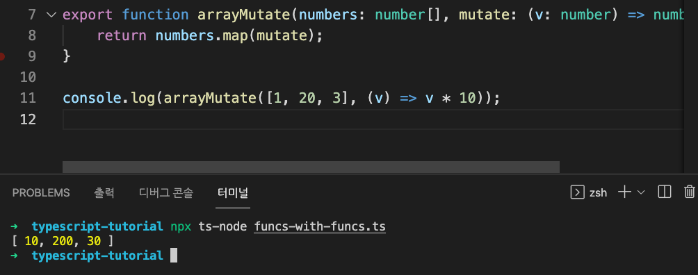 그리고 arrayMutate라는 함수 자체는 number []를 리턴합니다.