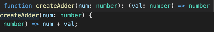 그럼 createAdder 함수의 리턴 타입 명기가 없었는데요. 마우스를 잠시 올려 볼까요?