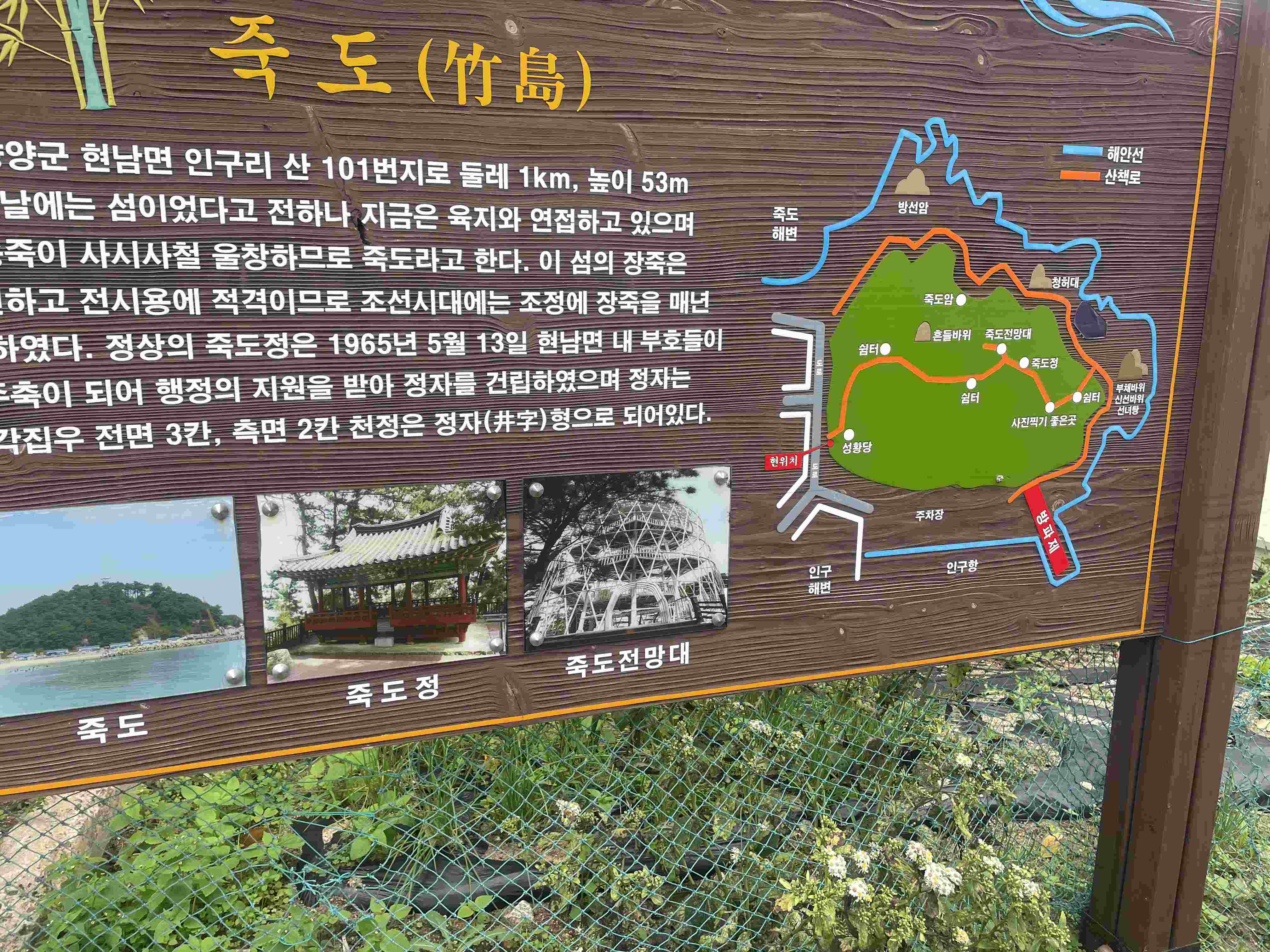 일단 성황당 입구 쪽 죽도 안내판입니다.