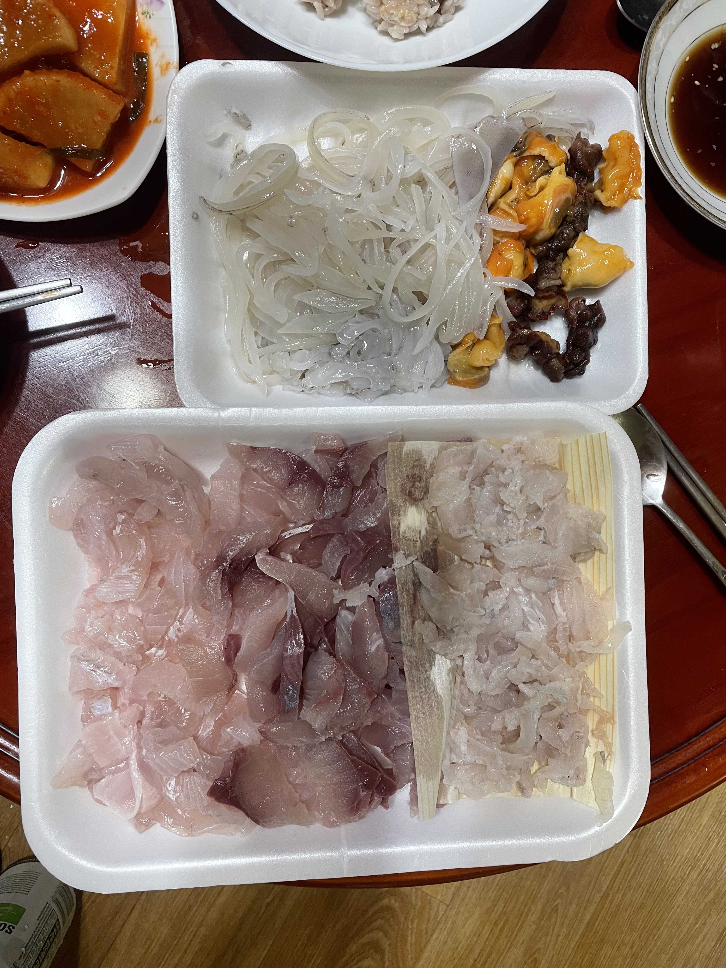 오랜 기다림 속에 집에서 아주 맛있게 회를 먹었네요.