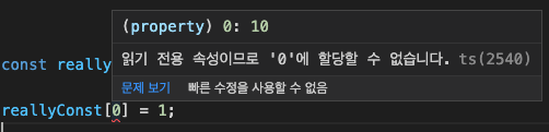 예상한데로 reallyConst 배열은 수정이 불가능한 상태가 되었네요.