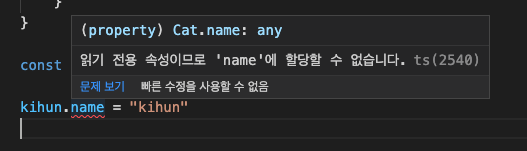 그러면 객체에 readonly를 지정하는 방법을 알아봤는데요.