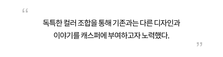 여기에 CASPER 레터링을 1열 숄더 포인트로 디자인해 캐스퍼 만의 아이코닉한 느낌을 전달하고 있다.