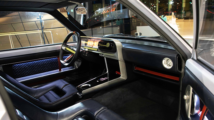 진공관 시계를 떠올리게 하는 대시보드, 손으로 패턴을 그리는 햅틱 방식의 변속 레버가 같은 공간에 있다는 것이 매우 인상적이다.