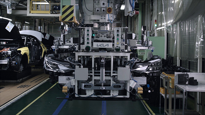 이번 영상에서는 EV6 생산을 위해 새롭게 적용한 공정과 신기술을 확인한다.