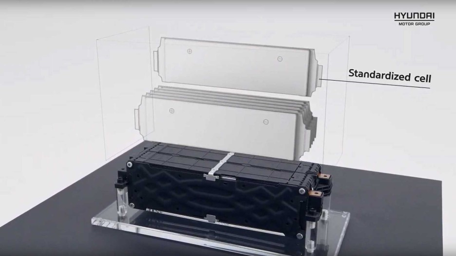 ㅇ 모든 E-GMP는 동일한 표준화 된 단일 유형의 배터리 모듈 (파우치형 표준 셀로 구성됨)을 사용합니다.