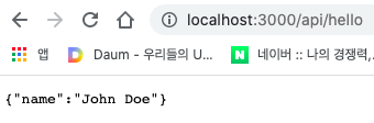 http://localhost:300/api/hello 주소로 들어가도 NextJS의 API 부분이 정상 작동되는 걸 볼 수 있습니다.