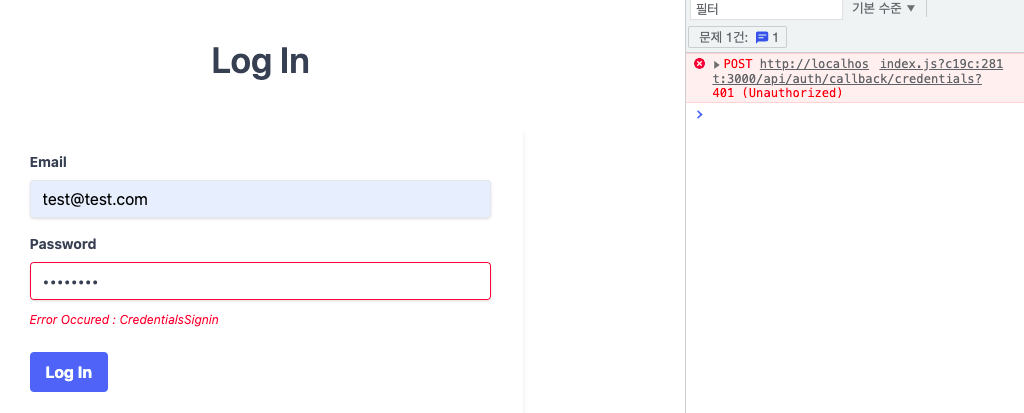 보통은 string 타입이지만 에러 체크를 위해 String(credentials.email) 식으로 강제로 string 타입화 했습니다.