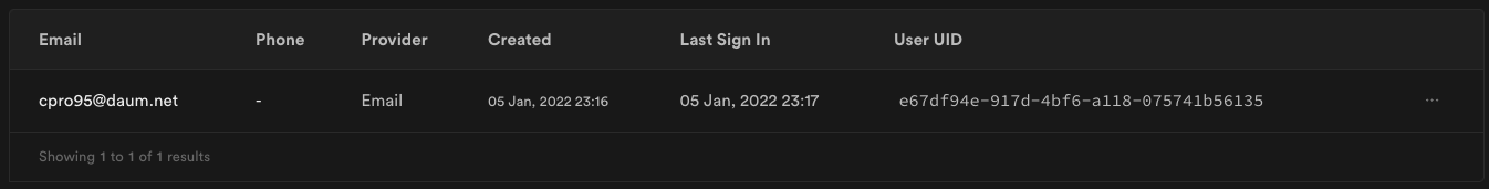 그리고 자동으로 Provider, Created, Last Sign In, User UID 등이 생성되었습니다.
