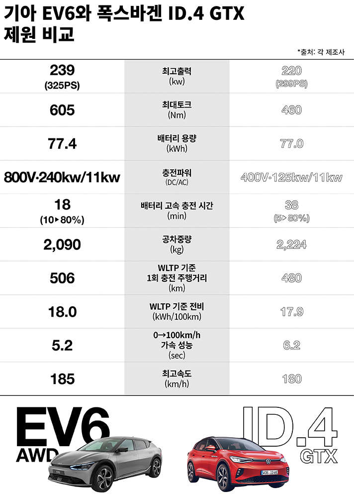 독일의 대표 3대 전문지는 EV6의 파워트레인과 주행 역동성을 평가할 때 자국의 최신 전기차인 폭스바겐 ID.4 GTX를 자주 언급했다.