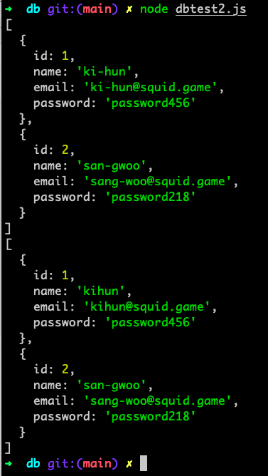 "UPDATE Users SET name = 'kihun', email = 'kihun@squid.game' WHERE id = 1"