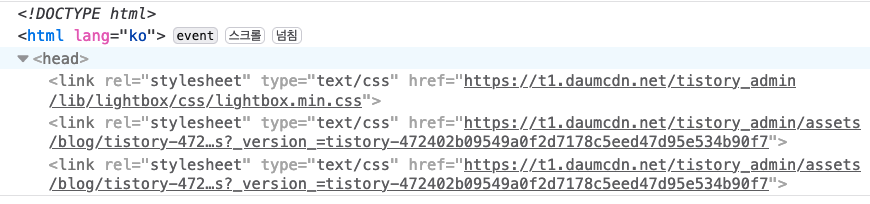 위 스크린숏은 제 블로그의 html 파일의 head 태그 내용인데요.